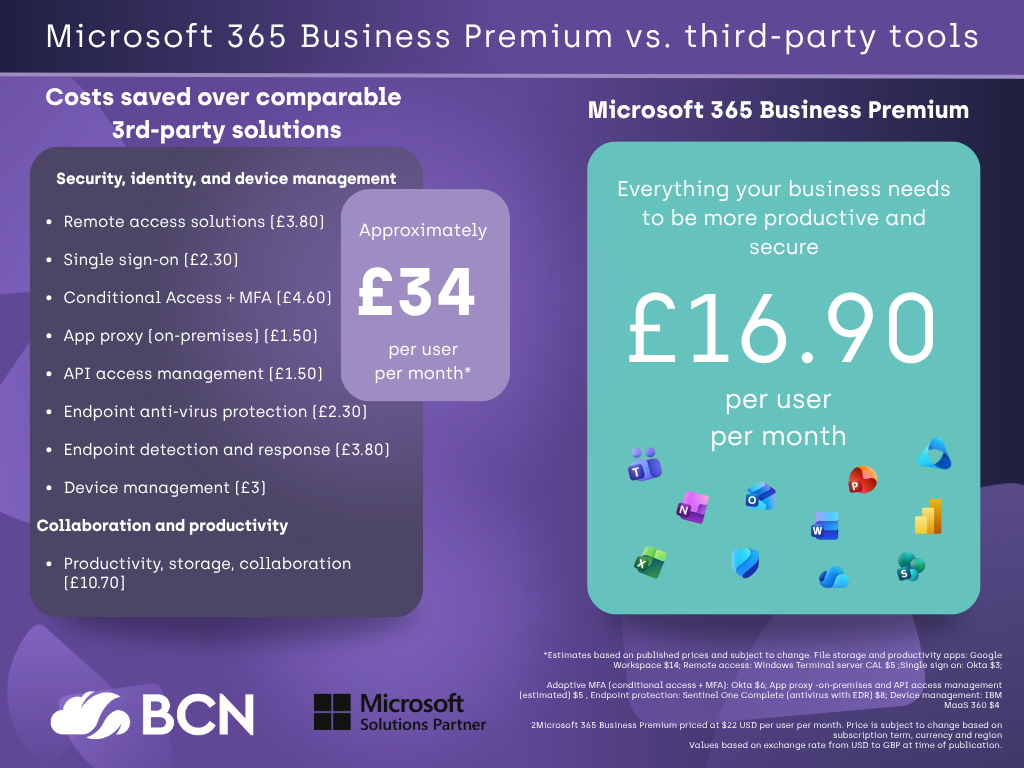 By using one integrated suite, businesses eliminate the need for many separate products. This reduces overlapping costs and can cut overall IT spend by up to in areas like security and management. At BCN, we’ve seen first-hand how consolidating onto Microsoft 365 Business Premium streamlines operations and frees up budget for innovation.